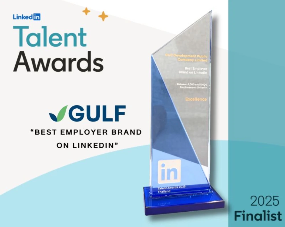 Gulf Development Public Company Limited (GULF) reaffirms its success in human resource management as a Finalist for the “Best Employer Brand on LinkedIn” award at the LinkedIn Talent Awards 2025. Shortlisted in the 1,000–5,000 employee category, this recognition reflects the company’s unwavering commitment to building a strong and credible employer brand on an international scale, centered on authentic storytelling that highlights corporate achievements alongside employee growth journeys.